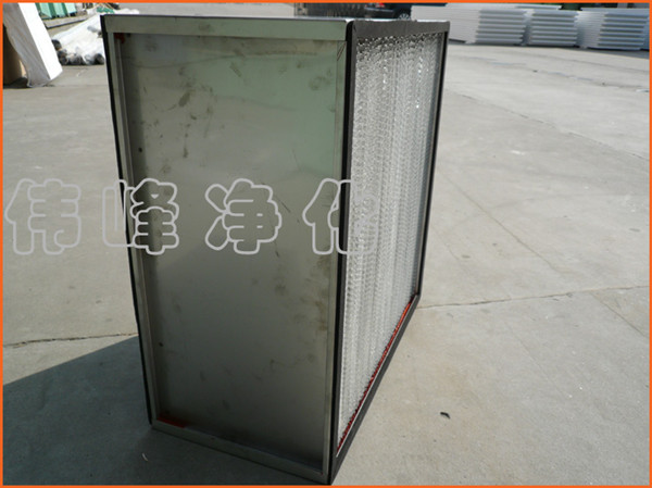 【产品介绍】吴江市伟峰净化设备有限公司的耐高湿高效过滤器采用超细玻璃纤维纸作滤料,胶板纸作分隔板,经特殊防潮处理后与铝合金框胶合制成。具有过滤效率高,阻力低,容尘量大,耐高湿性能好等特点,适用于医药行业输液生产等高湿度环境的空气净化。可长期在350度环境中使用。耐高温高效过滤器是用超细玻璃纤维纸,铝隔板,不锈钢框架,与进口耐高温密封封装而成,主要用于超净烘干箱等要求高温空气净化的设备与系统。